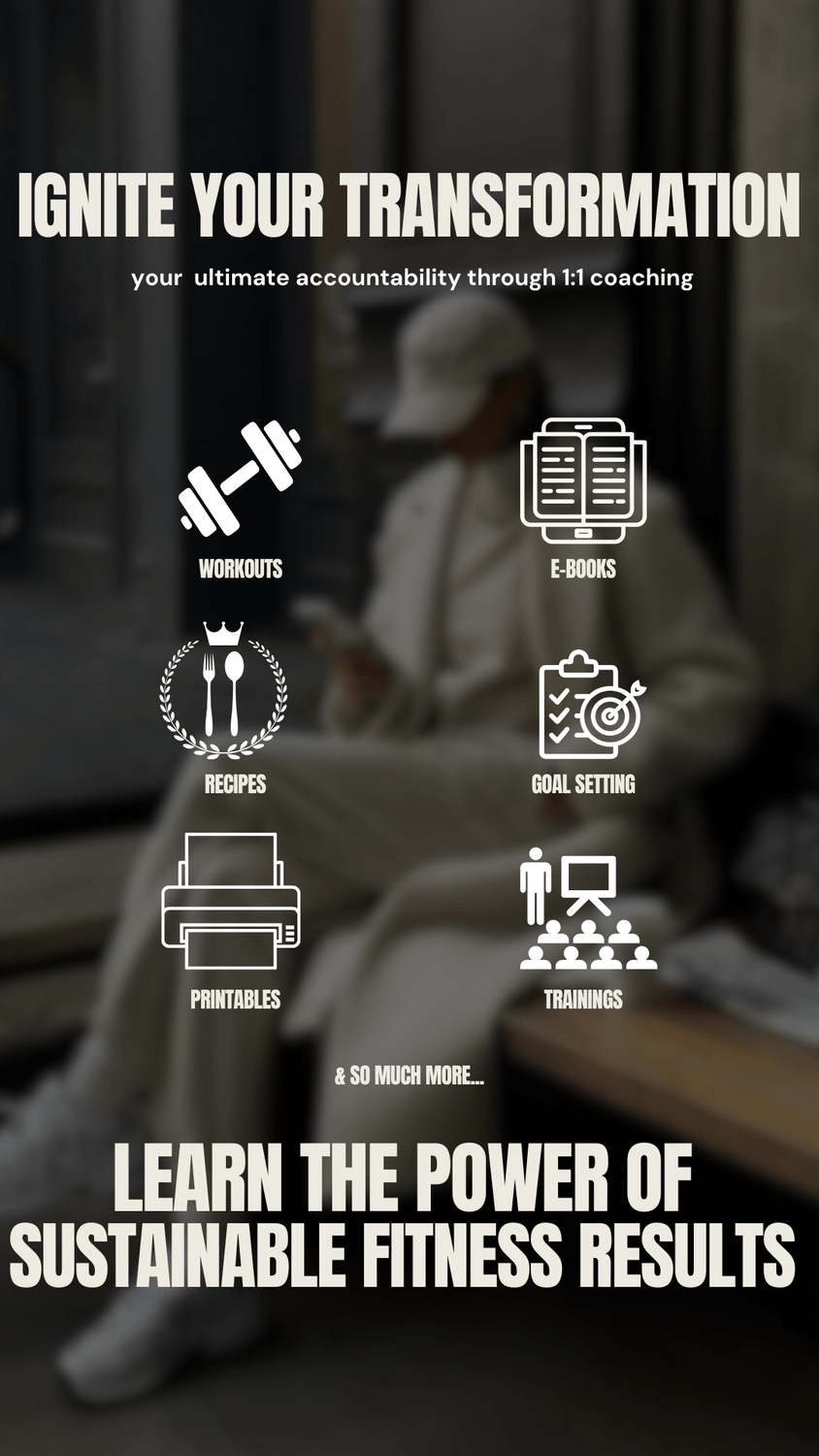 Here's the dealio: if you are willing to bet on yourself, roll up your sleeves and execute the custom gameplan I’ve created for you, you will get results. And we can do this by working together, during that time, we basically roll up our sleeves and get laser focused on 1 thing and 1 thing only: lose the weight, BUT!!!! prioritizing confidence, & self love. You will lose weight definitely, from here on out, I want you to shift your mind to the more important goal: to love yourself at its current state, while working on some improvements. Losing weight is just icing on the cake :)